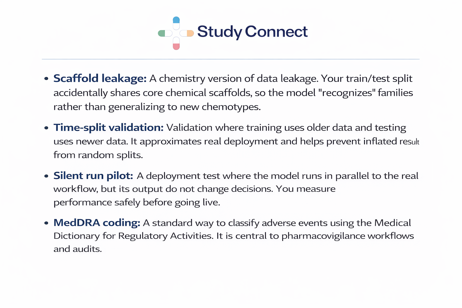 AI works best in pharma when it is tightly connected to real clinical workflows and validated prospectively. If you’re building or evaluating AI for drug discovery, trial operations, or safety, StudyConnect can help you pressure-test your approach with verified clinicians and investigators before you make expensive commitments. To explore collaboration or get support, reach out to support@studyconnect.org.