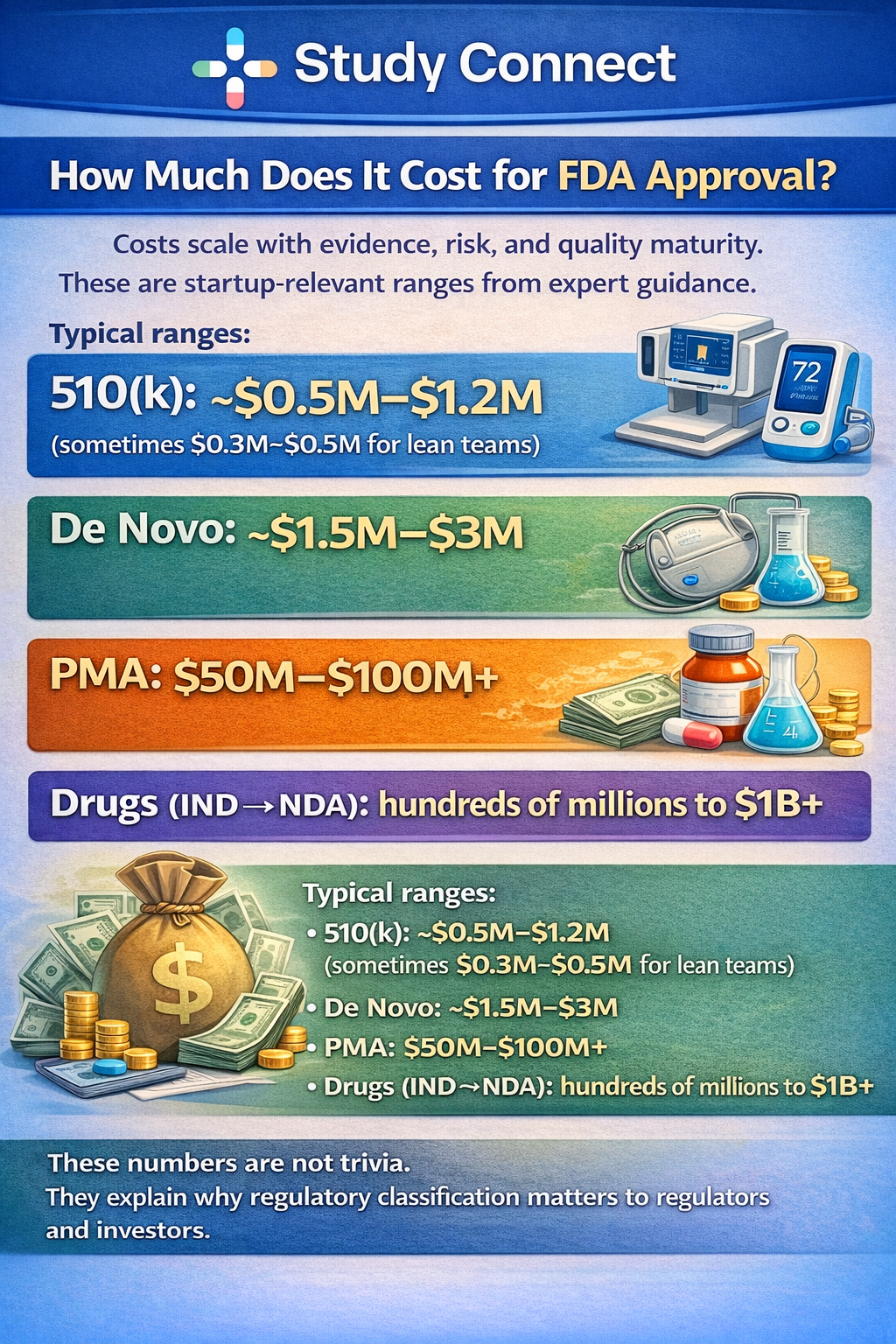 - A pathway hypothesis (510(k) vs De Novo vs PMA, or IND→NDA/BLA)